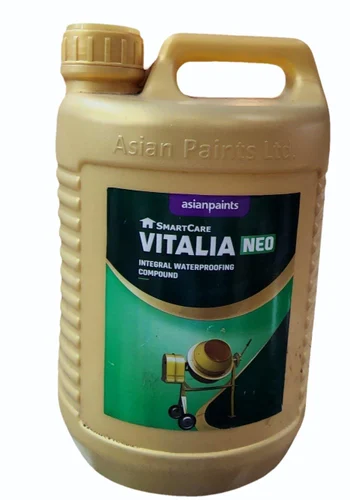 Asian Paints SmartCare Vitalia NEO is an integral liquid waterprooing compound with advanced formulation and superior plasticizing additives for cement concrete, mortar and plasters. The product is formulated with selected surface active plasticizing agents, chemicals & additives which make the cement concrete/plaster mix cohesive and upon curing, reduces water permeability.